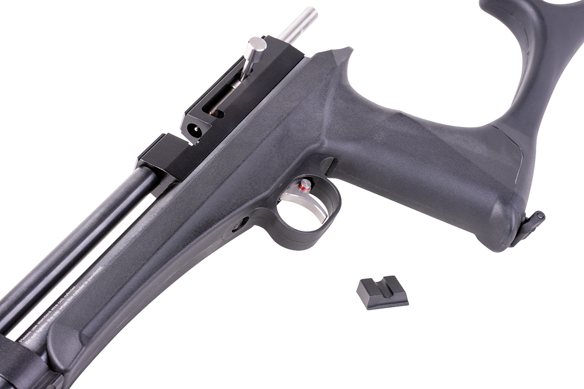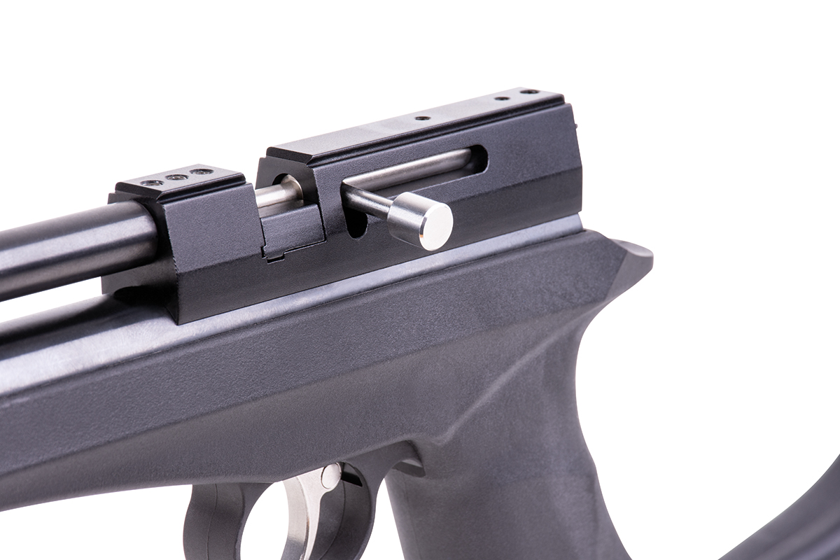 The DIANA chaser rifle set includes the chaser pistol, a buttstock, a silencer and a rifle barrel. It is supplied with a single-shot insert, but can also be operated with an optional 9-shot drum magazine. The milled dovetail rail allows the attachment of a suitable optic.